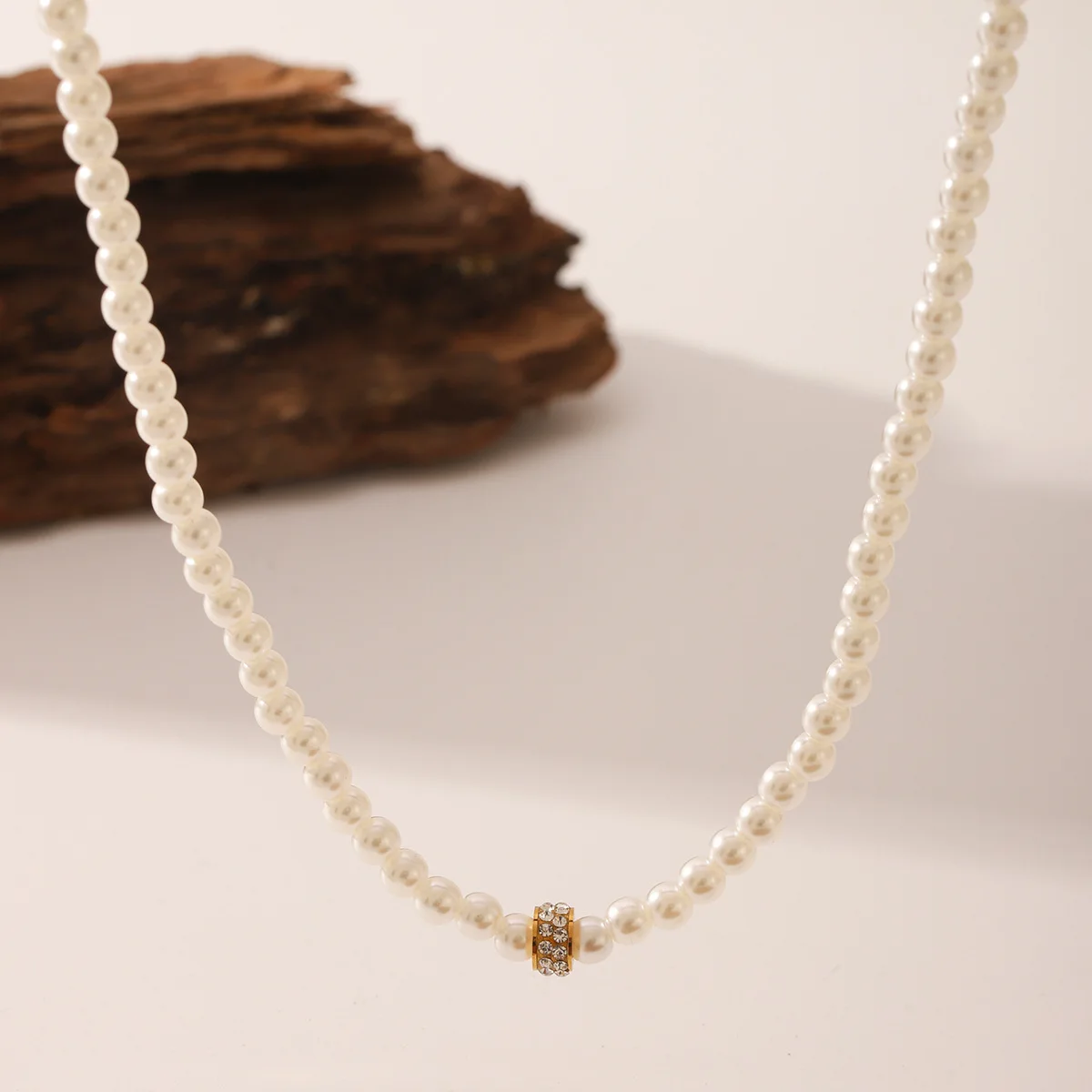MW French Irregular Freshwater Pearl 18K Gold Plated Stainless Steel Wedding Necklace with Zircon Chain Pendant for Women